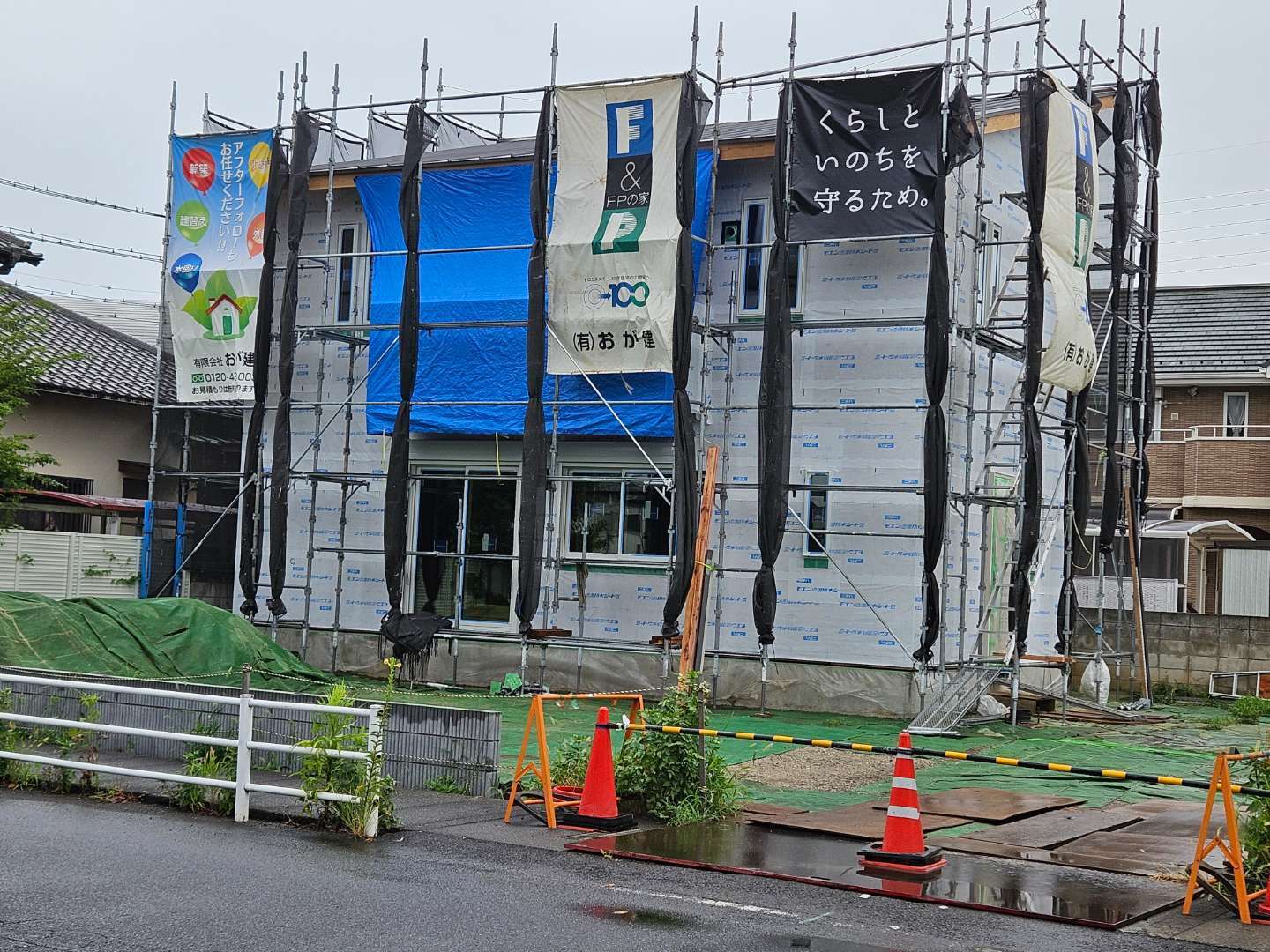 今日は朝から雨になりました、気温は上がらないでよいのですが湿度は高く不快です、雨の中川口市ON様宅の現場が気になり見に行きました、昨日までに透湿防水シートを張り終えたので雨が中に入ることはありませんでした、安心できました。