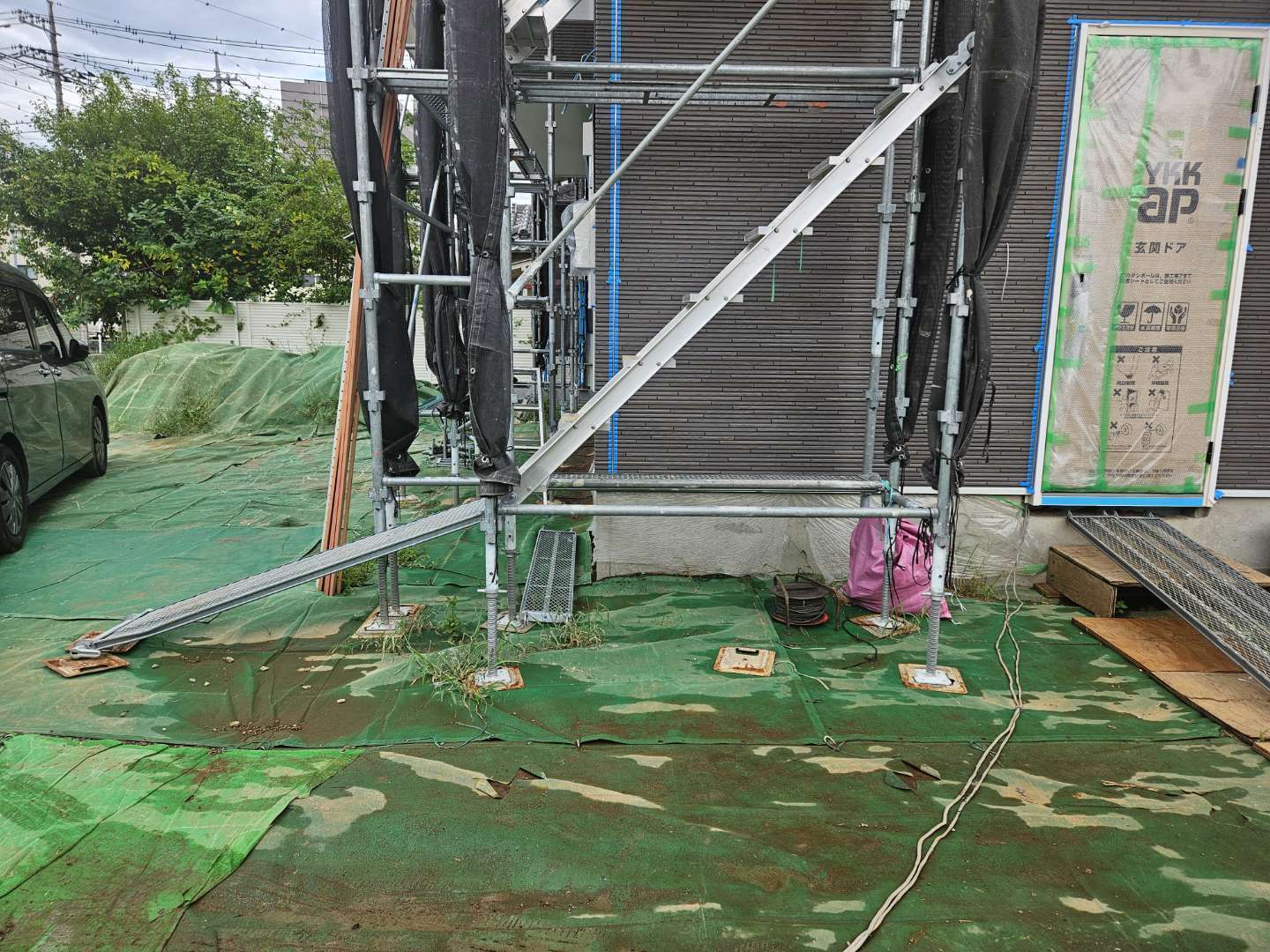 振替休日の今日は曇り空で気温も落ち着いてきました、先週の雨続きで遅れていたコーキング工事の業者さんが休みのところを返上して工事を行っていただきました、明日は太陽光パネルを取り付ける予定です、コーキング、太陽光パネルが終えると足場を外す予定です。