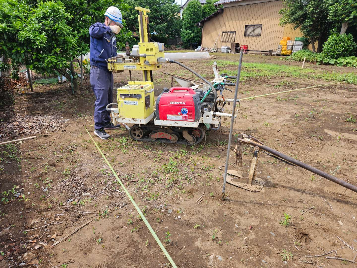 今朝一番でさいたま市OK様邸の地盤調査を行いました、先週の天気予報では天候が心配されたのですが今朝は曇り空から日差しが差し込んでいました。