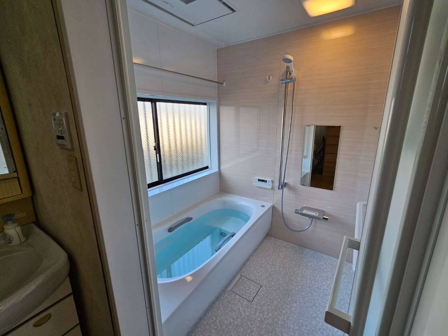 今週火曜日から始めた川口市のT様邸浴室リフォーム工事今日から新しい浴室を使っていただくようになりました、T様宅は介護の祖母が足の状態が良くなく段差が問題でした、以前の浴室も入り口の段差が大きく危険な部分でした、手すりなどの少なく高齢の方には危険がありました、バリアフリー化をはじめ高齢の方にやさしい浴室に仕上がりました、今日から使用していただくように使い方を話してきました。