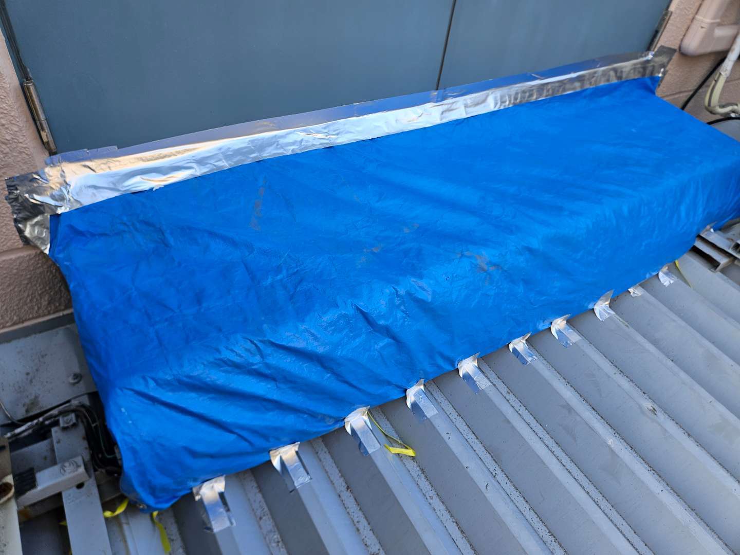 夏の暑さも収まりそうです、近所の会社から漏水対策を依頼され実験的2階のキャトオーク部分に部分にブルシートで覆い雨水が止まるかの実験の結果、今日午後の激しい雨でも漏らないことが実証されました会社の方にも確認をいただき手直し工事の見積もりを出すことになりました。