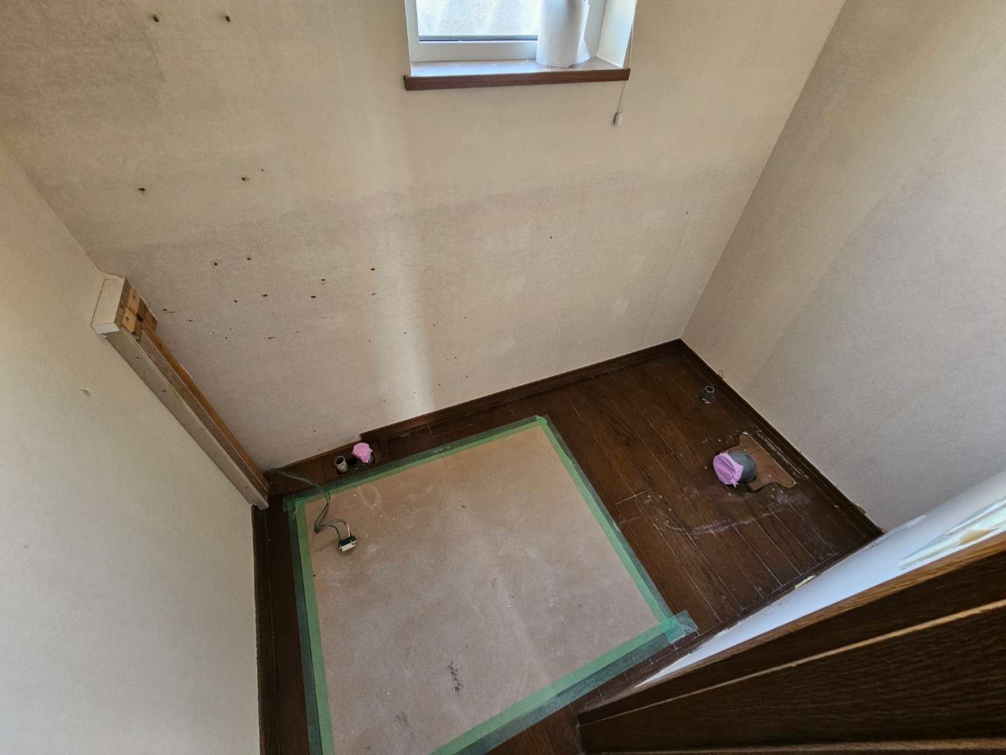 便器、手洗いを撤去して壁紙を張り替えます。