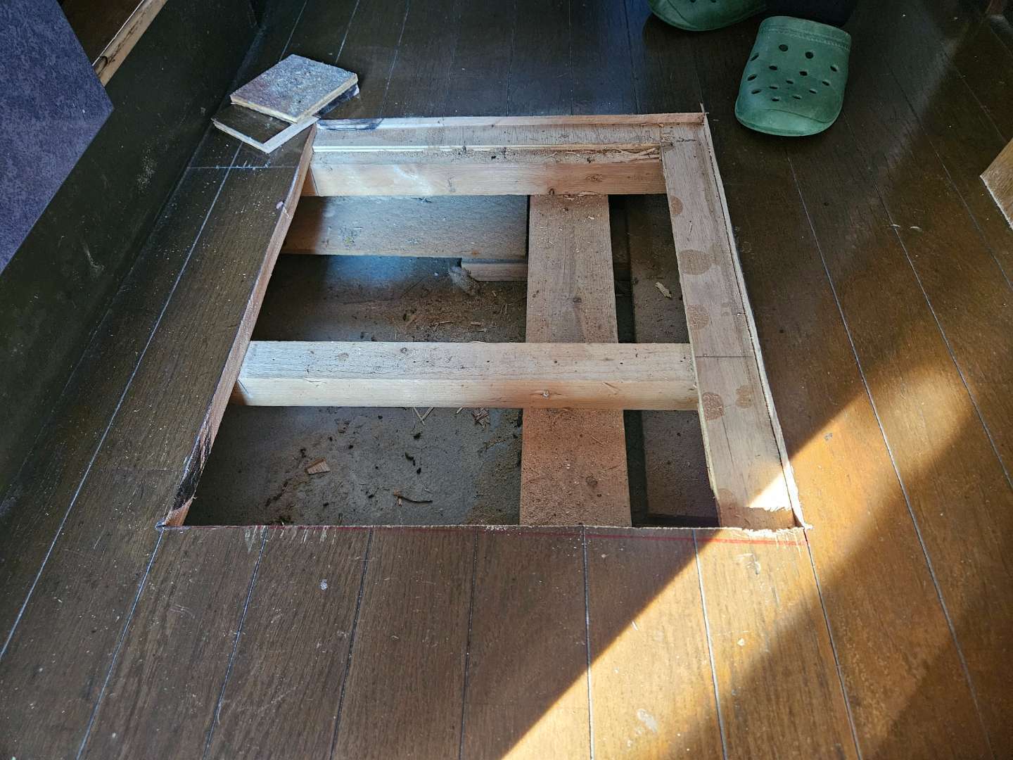 お湯管の漏水工事直しを水道工事の方と大工さんで行いました、2階のキッチンからお湯の銅管が劣化して1階の店舗部分の天井に水が落ちたそうです、連絡を受け伺ったのですがかなりの漏水があり床、天井を解体して漏水を止めることができました、あとの補修が大変でしたが今日終えることができました。