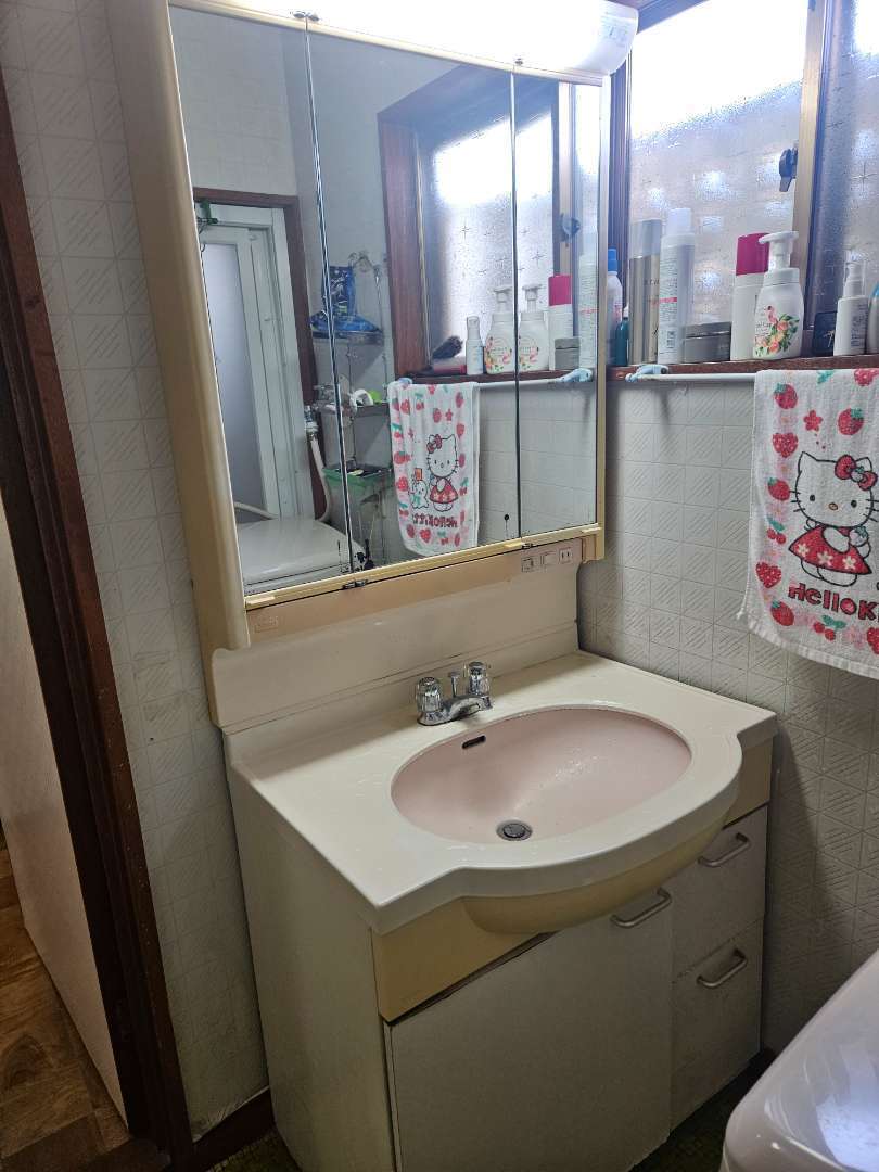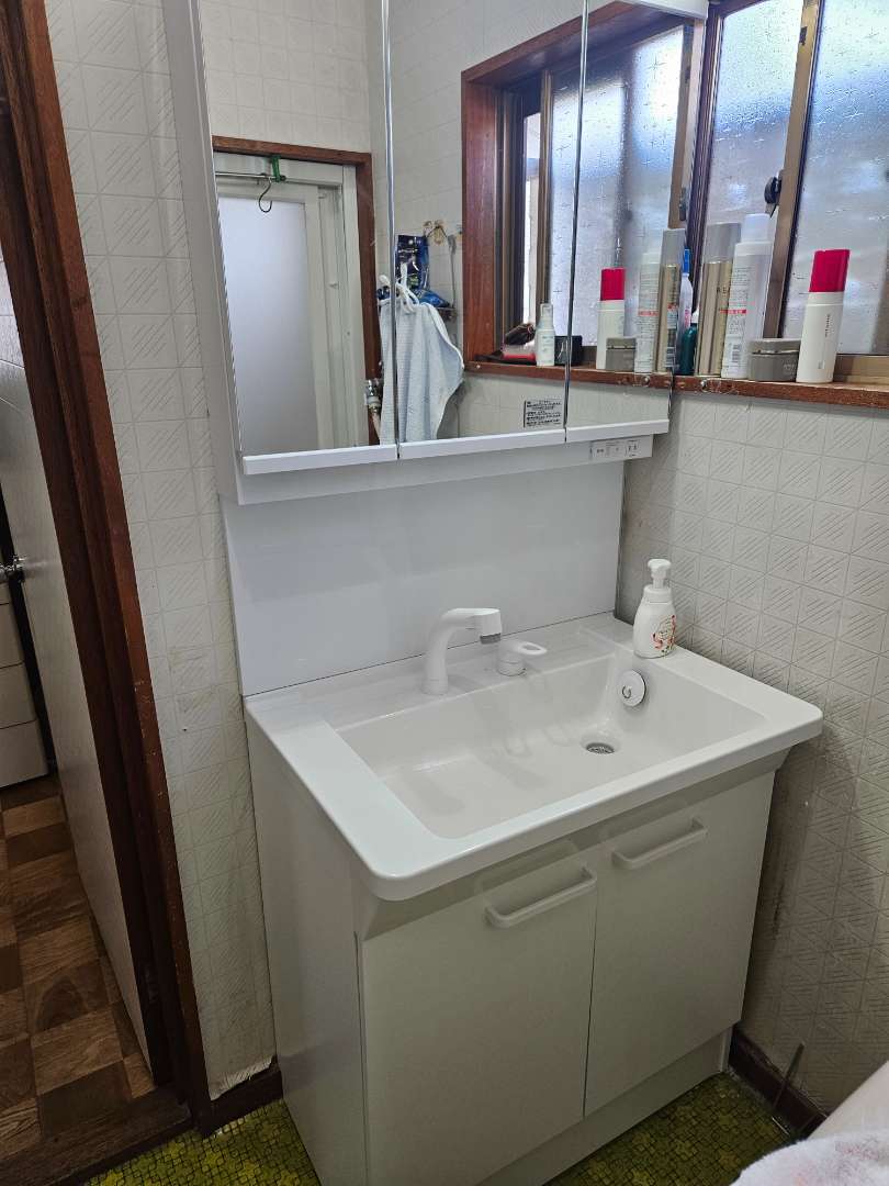 川口市のT様から頼まれていた洗面台取替工事を水道工事屋さんと朝から行い午前中に終えることができました、以前の洗面台は年数もたち水漏れもしているようでした、取り換えたことで安心して使用できますと喜んでいただきました。