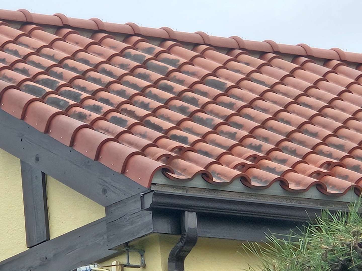 曇り空の今朝、近所T様から電話連絡があり伺いました、今日初めて気が付いたそうですが屋根瓦が黒ずんでいる、もしかすると棟瓦から水が入り棟の土が流れ出したのではないか心配されていました、写真を拡大してみると瓦の谷より瓦の上が黒ずんでいます、なんの原因か瓦工事店に聞いてみることになりました。