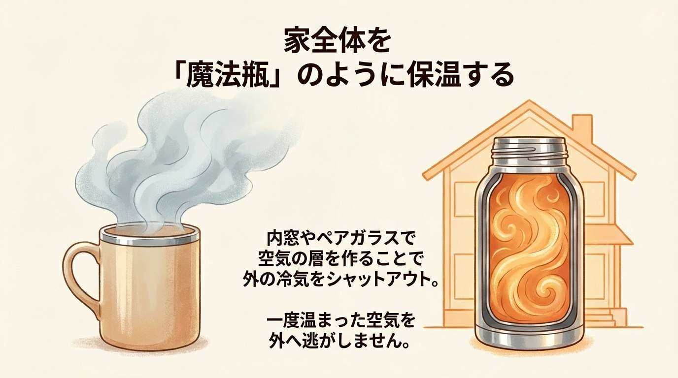 床暖房や最新の大型エアコンを導入する前に、まずは熱の流出口である「窓」を塞ぐ。これが最も理にかなった寒さ対策になります。