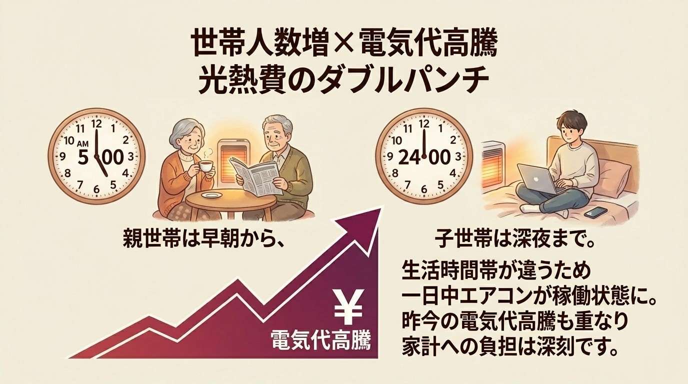 世帯人数増加 × 電気代高騰のダブルパンチ