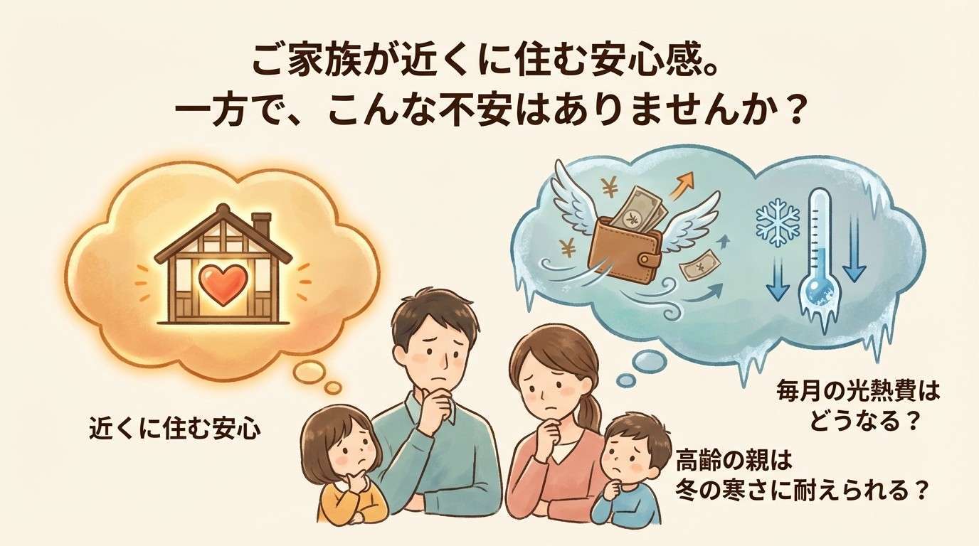 ご実家を二世帯住宅へと建て替える、あるいはリフォームする。ご家族が近くに住む安心感がある一方で、「毎月の光熱費はどうなる?」「高齢の親は冬の寒さに耐えられる?」といった不安を抱えていませんか?