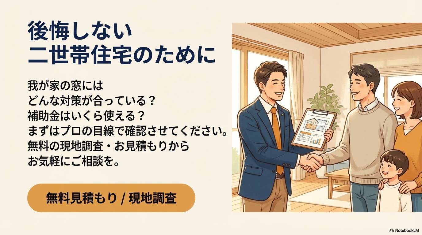 親世帯の命と健康を守るため、二世帯住宅において窓の断熱は「必須の対策」と言えます。