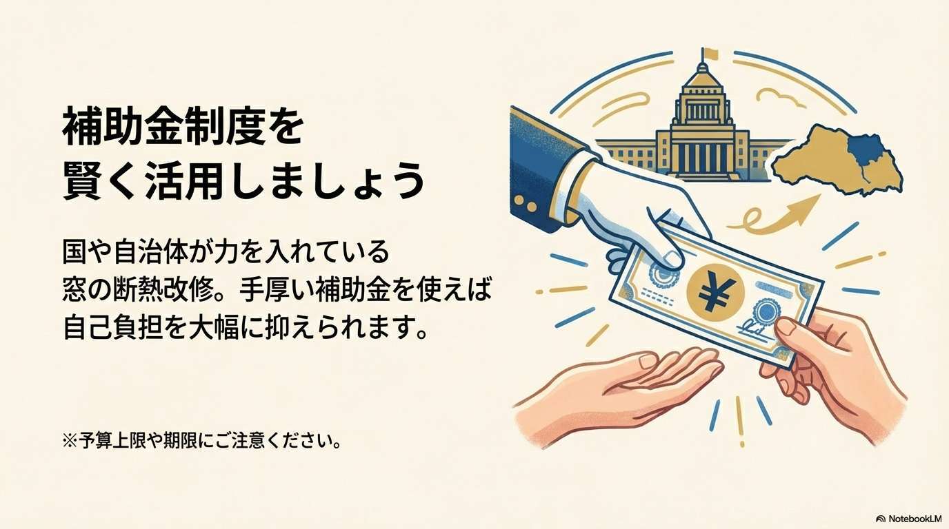 実は、窓の断熱改修は、国や自治体が最も力を入れている省エネ対策の一つであり、手厚い補助金・助成金制度が用意されているケースが多いのです。