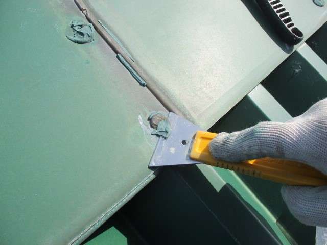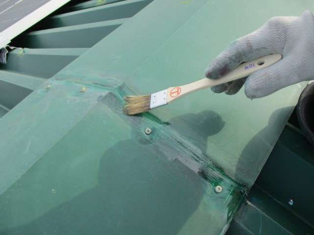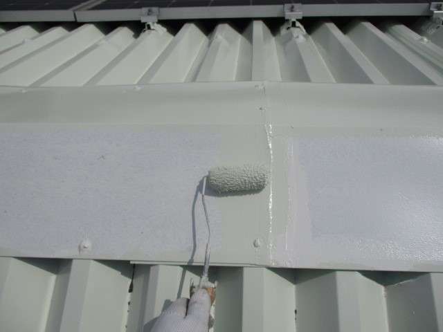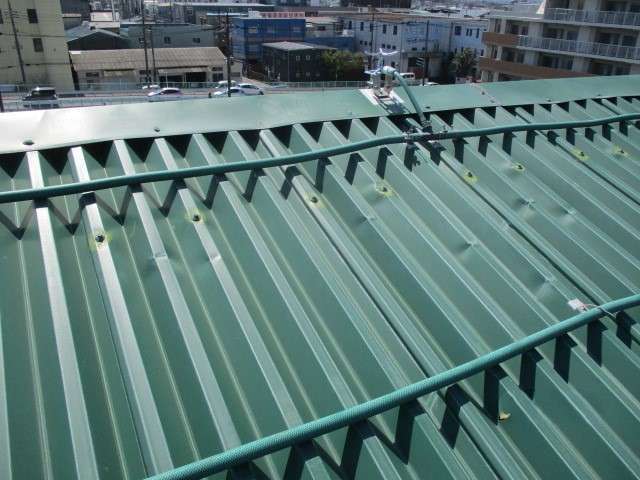 以前は濃い緑色でしたが、遮熱効果を最大限に発揮できるよう、熱を反射しやすい白に近い薄い緑色をご提案し、施工しました。